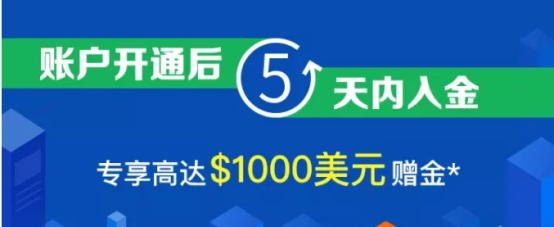 在嘉盛集团开设账户后5个日历日内*成功入金$500美元或以上,即可在账户开通30个日历日内从每手“合资格交易”获得 $5美元赠金*。
