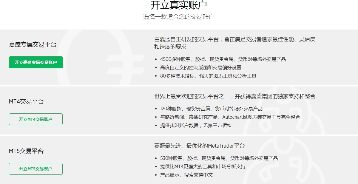 根据软件使用需求,点选对应的账户类型(请注意,嘉盛账户完全独立不可交叉登录使用,请在开户时确认要使用的交易软件)
